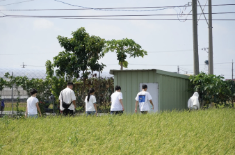 | Figure 4. Interviewing staff from the Xiluo Farmers Association in detail about rice | Figure 5.In the front of this photo, the rice is harvested, and in the back is the greenhouse. |